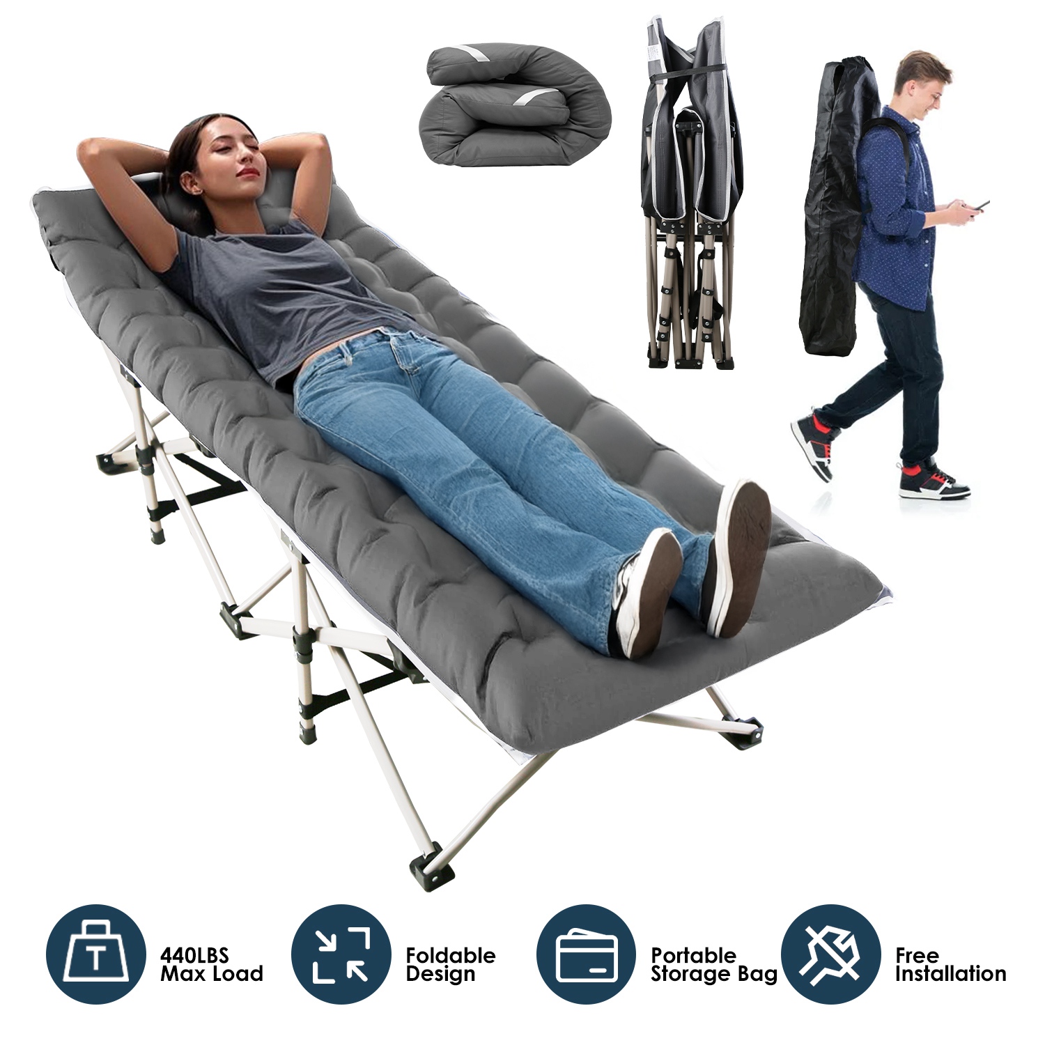 Home > Folding Camping Cot Portable Sleeping Camping Bed Collapsible Travel Camp Cots Guest Bed Cot with 2-Sided Soft Pad 440LBS Max Load